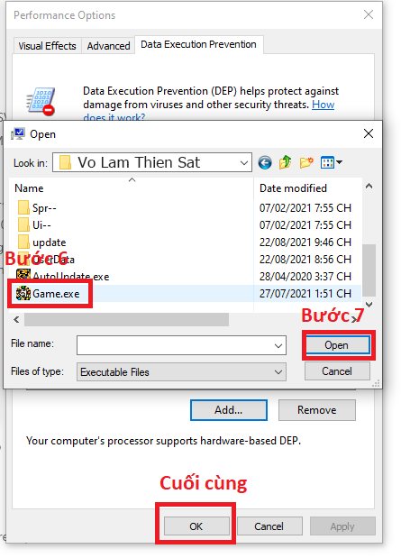 Sau khi click Add…, tìm đến thư mục chứa Game.exe
